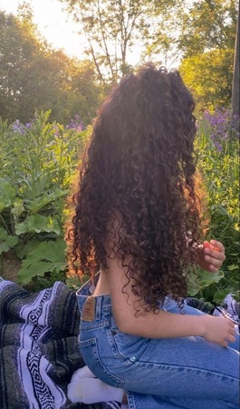 rot, rückenlang, wellig