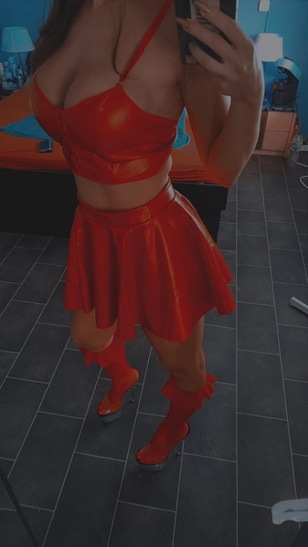 Sie hat schon seit Wochen rote Haare ?? und sieht damit super aus. Engel passt, aber mit roten Haaren.( Kleiner Teufel) ?